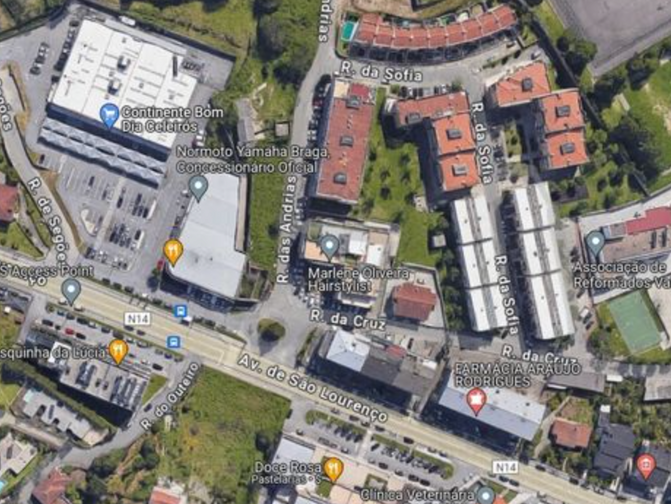 Localização privilegiada: a 150 metros do Continente Bom Dia de Celerós, frente à Estrada Nacional 14 e a apenas 500 m dos principais eixos rodoviários.
